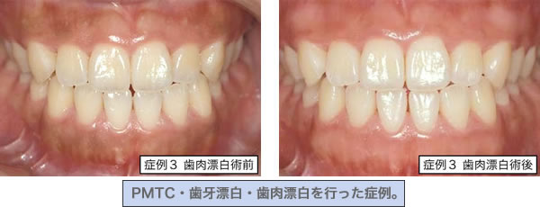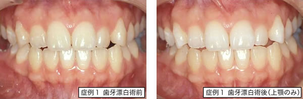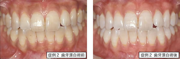 歯の色には個人差があります。しかし、最近では歯の色を白くしたいという患者さんからの要望が多いようです。当院では、歯を削らずに白くするという方法を行っています。しかし、症例2のようにテトラサイクリン等による生まれながらにして歯牙の変色があるケースでは、限界があります。重度のケースでは、ラミネートベニアによる方法などが適しているといえます。