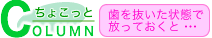 歯を抜いたままそのままにしておくと、隣の歯が倒れてきたり、咬み合わせる歯が伸びてきたり、歯に隙間が開いてきたりと様々な障害を引き起こします。左右対称に噛むことができなければ、お顔の筋肉(表情筋)にも影響し、左右非対称な顔貌になります。